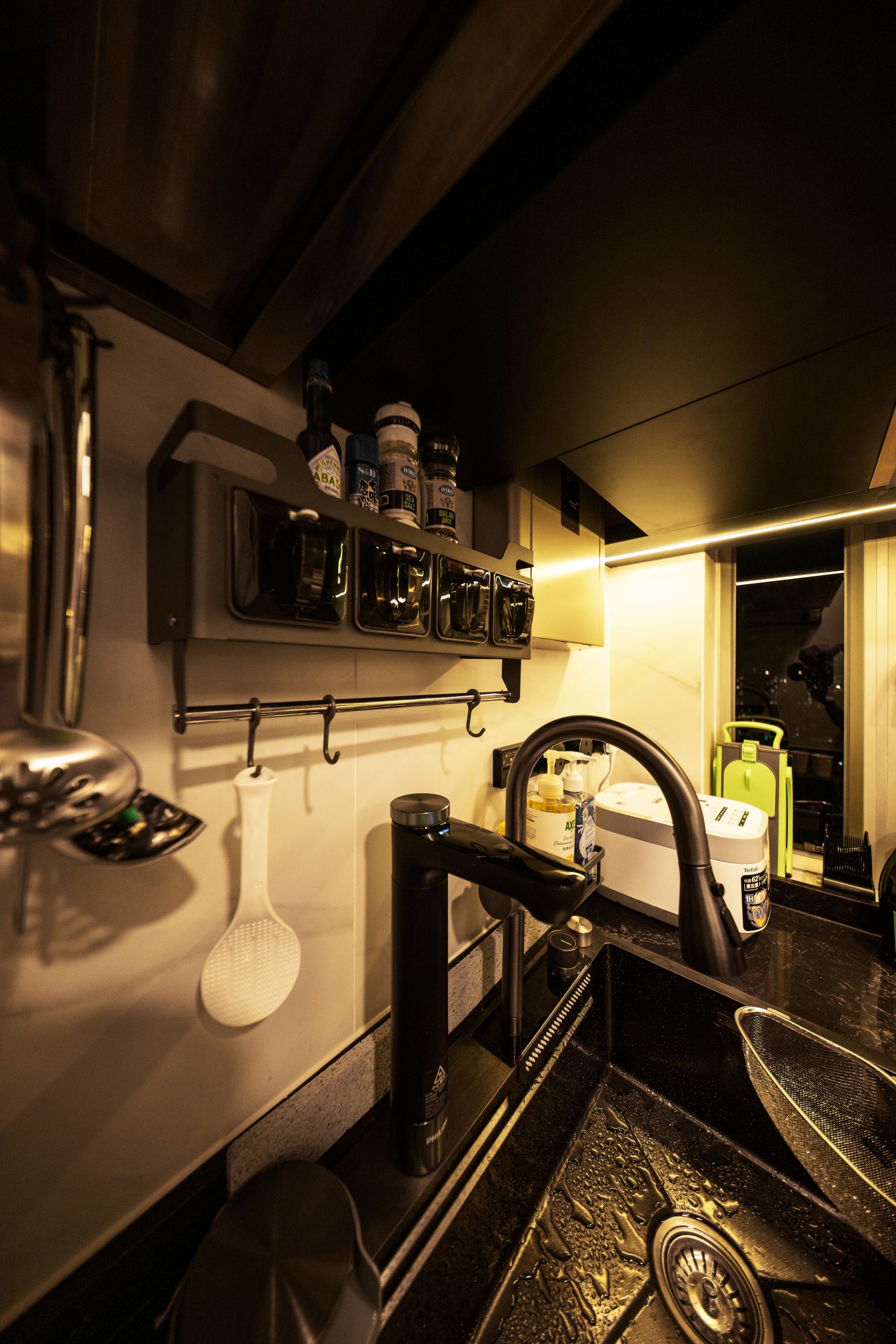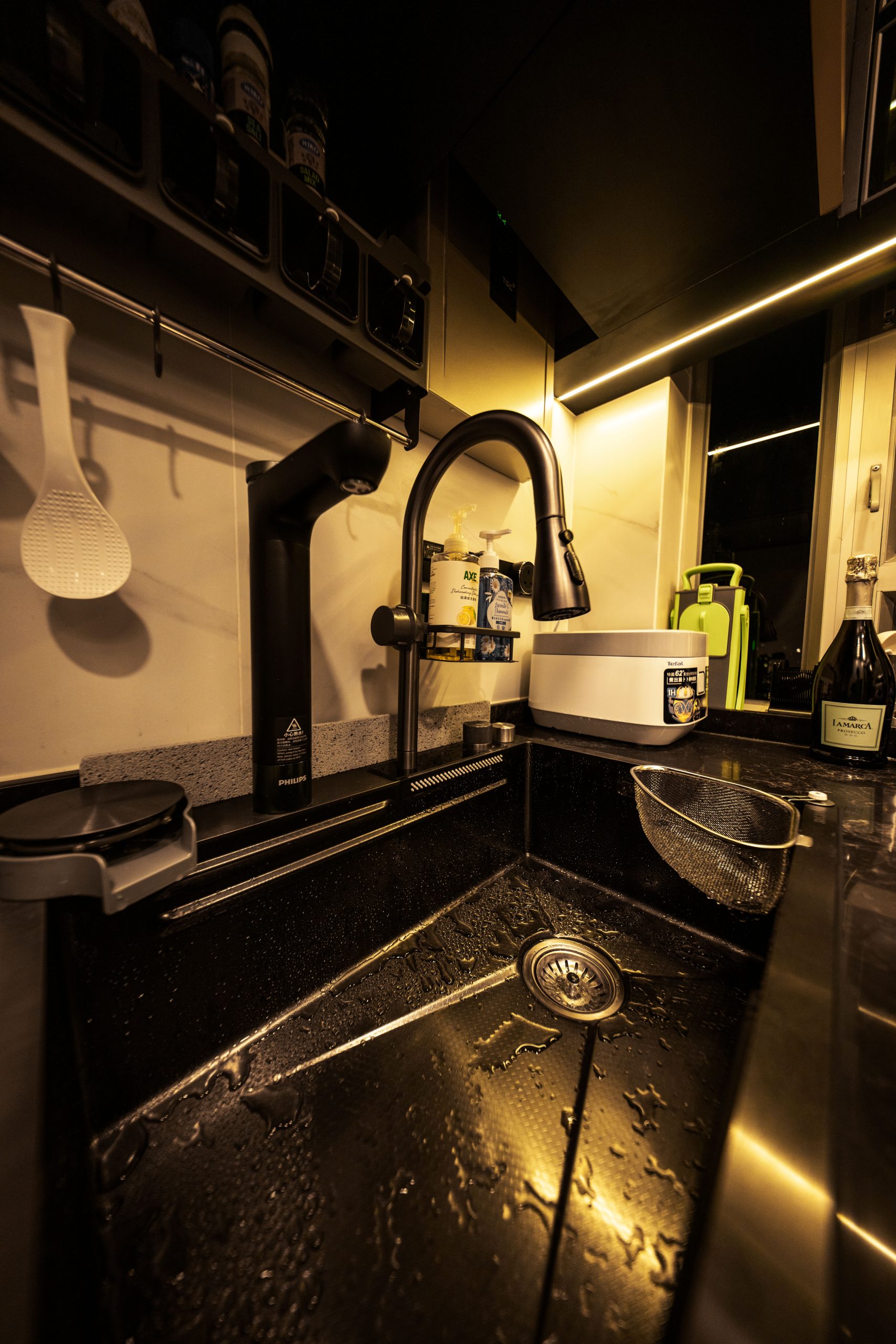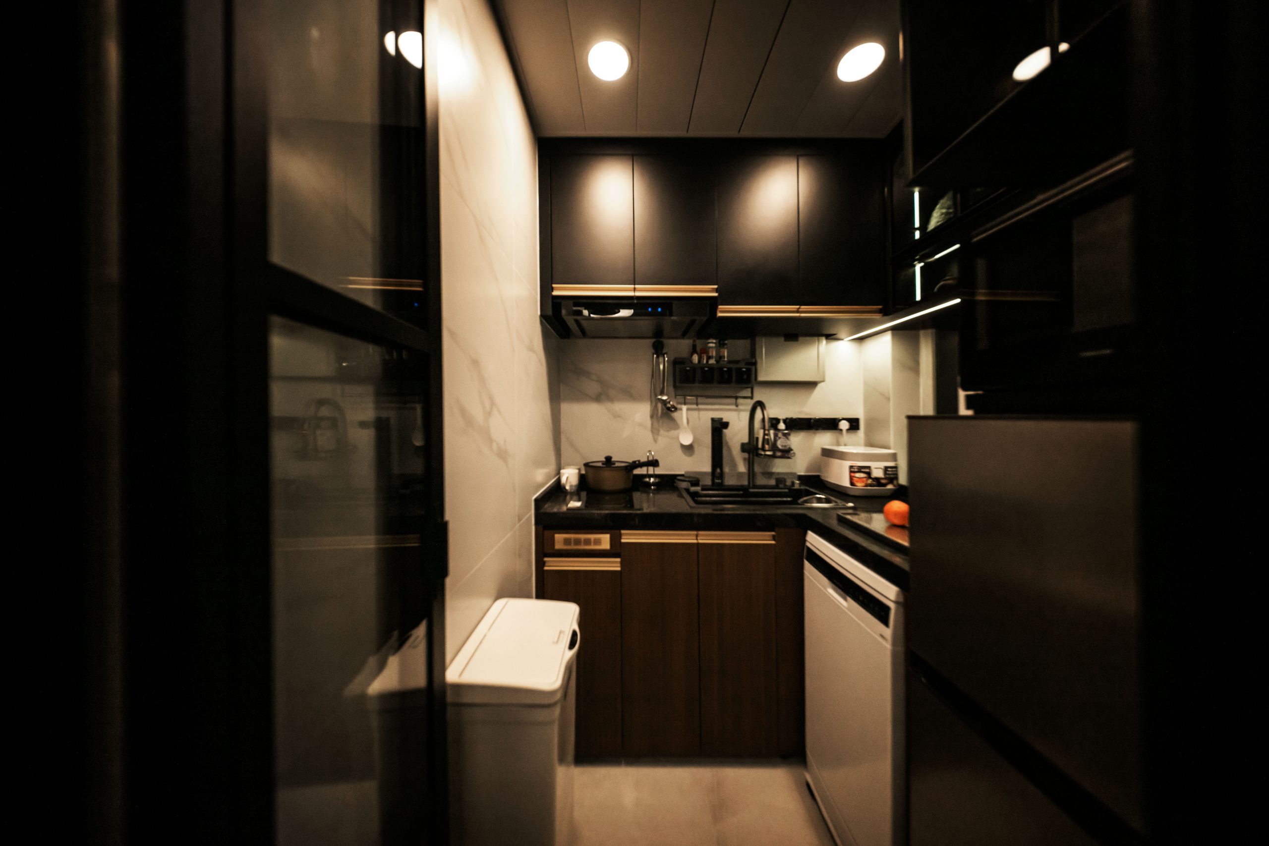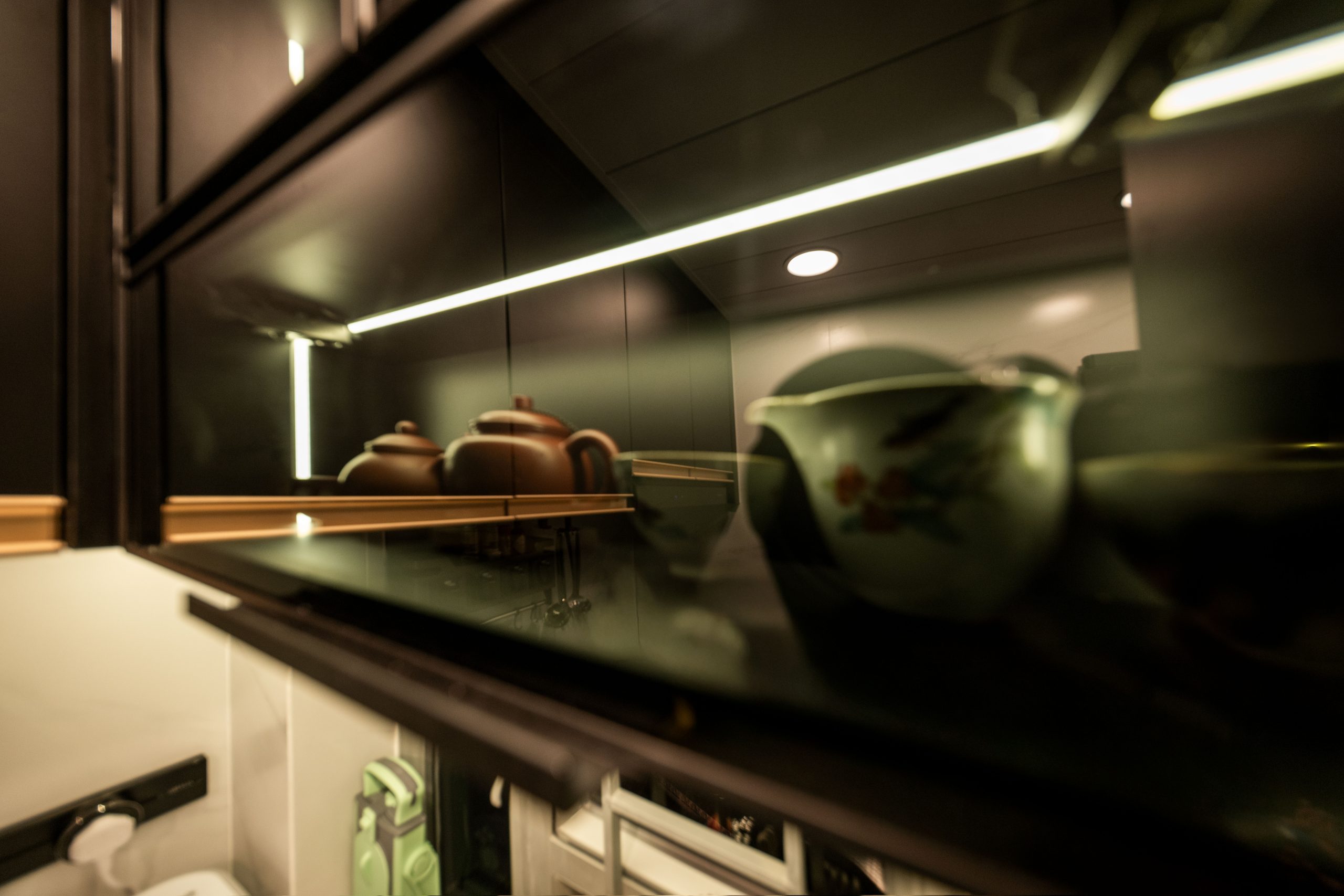 - 嵌入式LED燈帶:安裝於吊櫃下方,提供操作檯面精準照明,確保烹飪過程清晰無影。