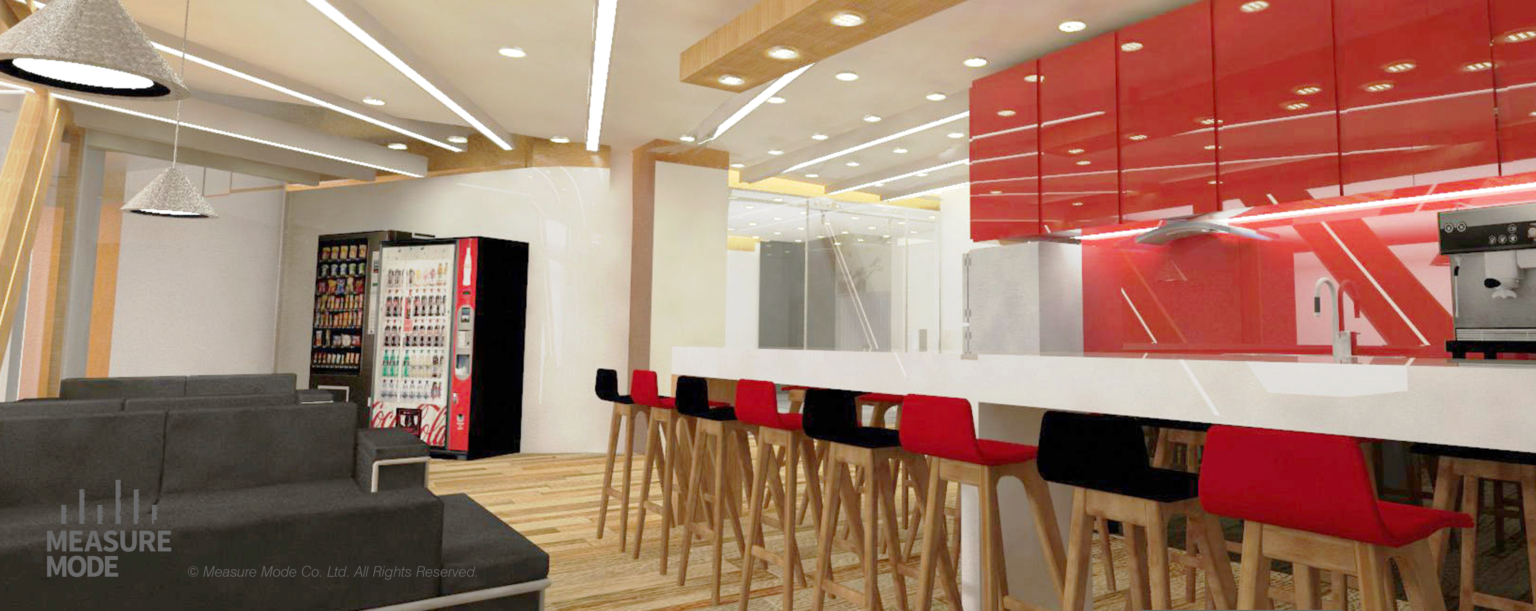 辦公空間以斜線為設計語彙,融入紅黑對比材質與「NW」標誌元素,打造動線導向的現代環境。核心設計包括: